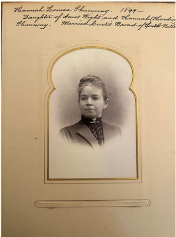 Figure 3 Hannah Louisa Shumway (1849-) daughter of Amos Wight and Hannah (Harding) Shumway, married Curtis Broad of South Natick
